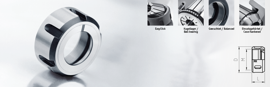 Verschleissfestigkeit und Rundlaufgenauigkeit sind die unabdingbaren Anforderungen an Spannmuttern in den rauen Bedingungen der heutigen Produktionsbetriebe. Unsere einsatzgehärteten und geschliffenen Spannmuttern für Spannzangen nach DIN6388 und DIN6499 erfüllen diese Ansprüche in einzigartiger Qualität.