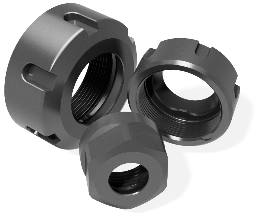 Verschleissfestigkeit und Rundlaufgenauigkeit sind die unabdingbaren Anforderungen an Spannmuttern in den rauen Bedingungen der heutigen Produktionsbetriebe. Unsere einsatzgehärteten und geschliffenen Spannmuttern für Spannzangen nach DIN6388 und DIN6499 erfüllen diese Ansprüche in einzigartiger Qualität.